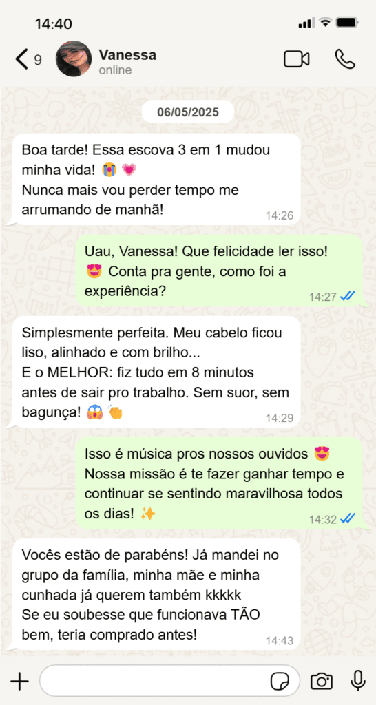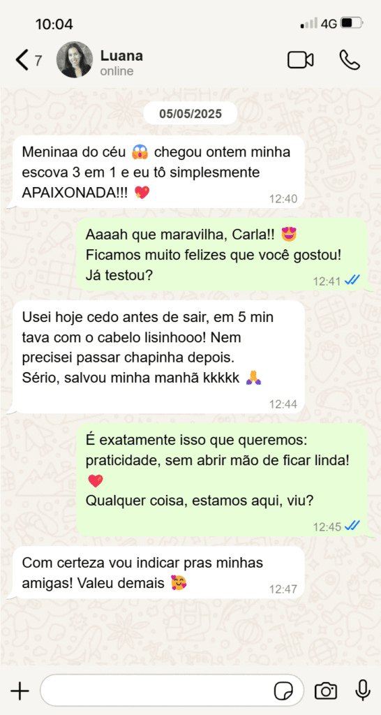 Em poucos minutos, cabelos alinhados, lisos e sedosos.